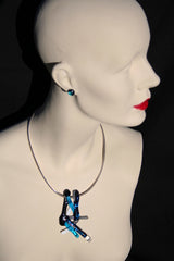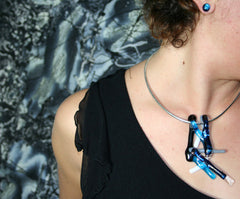 Dichroic (DIE-CROW-ICK) glass, discovered by bead makers in the early 1990’s, has rapidly become a favorite medium for glass artists. The material is valued for its ability to reflect intense light without producing a glare; it has been around for years, used widely in space industry, medical and photographic applications. For all its beauty and appeal it can be a touchy medium to conquer and an expensive one to experiment with. I enjoy the fusion of glass because it reflects the processes of heat and sand (where the ocean meets the land). A powerful force capture in glass.
