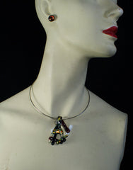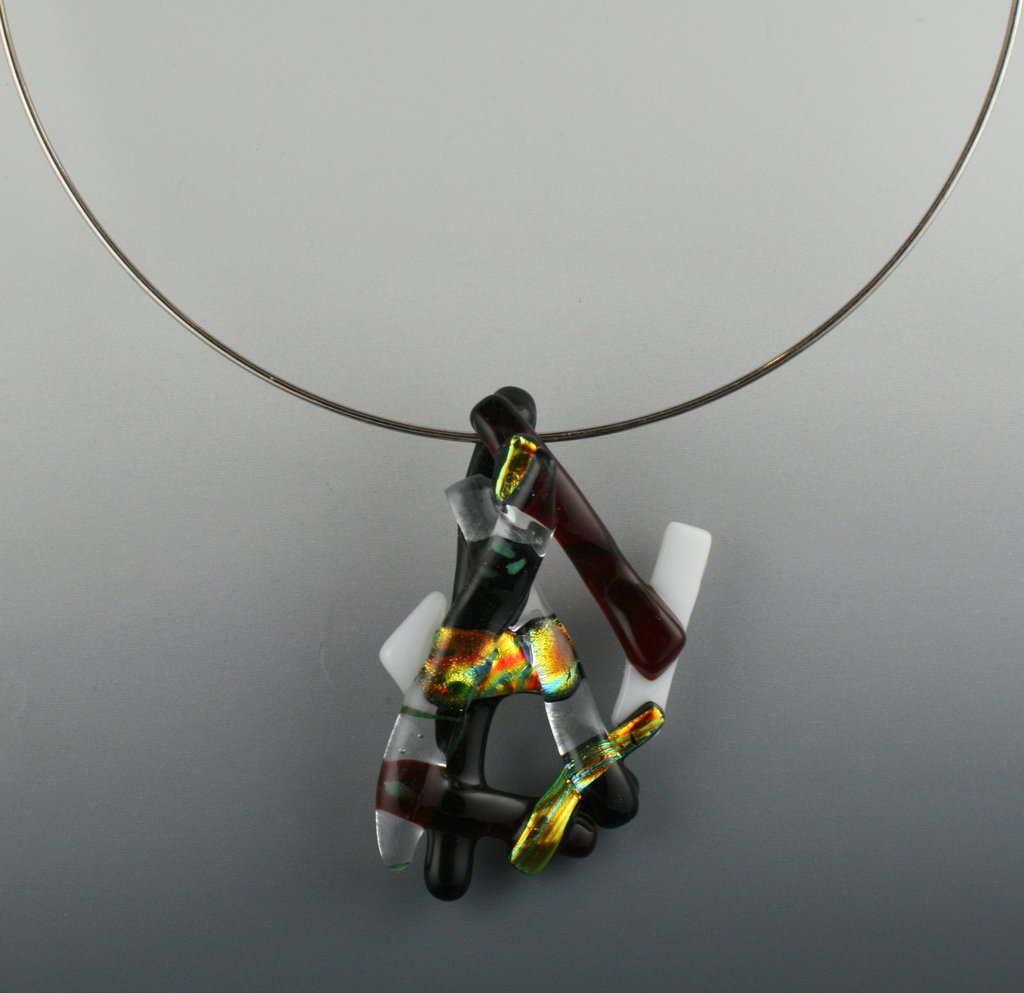 Dichroic (DIE-CROW-ICK) glass, discovered by bead makers in the early 1990’s, has rapidly become a favorite medium for glass artists. The material is valued for its ability to reflect intense light without producing a glare; it has been around for years, used widely in space industry, medical and photographic applications. For all its beauty and appeal it can be a touchy medium to conquer and an expensive one to experiment with. I enjoy the fusion of glass because it reflects the processes of heat and sand (where the ocean meets the land). A powerful force capture in glass.